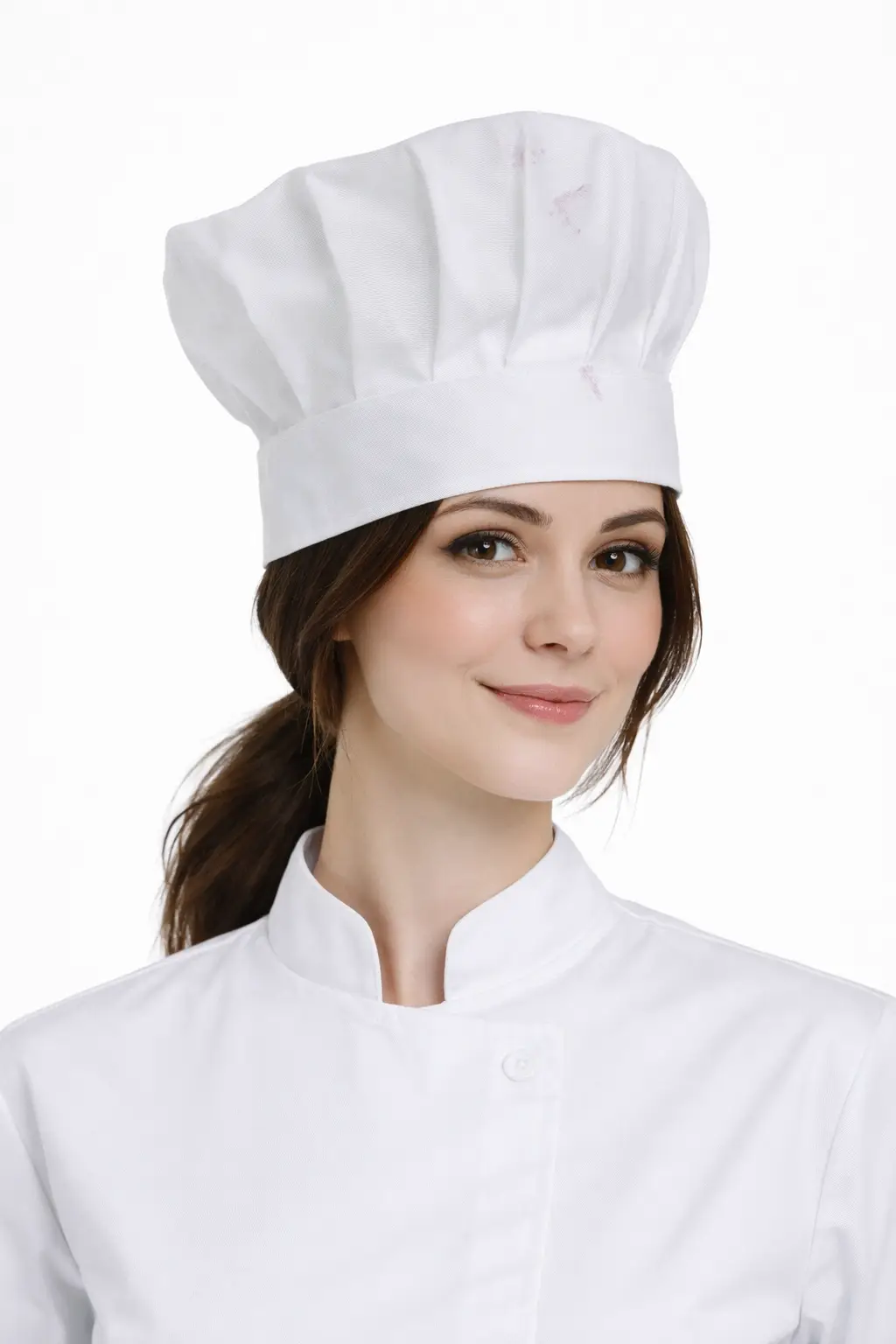 Kapa kuharska klasičan je dio radne odjeće u kuhinji. Visoki oblik daje prepoznatljiv i uredan profesionalni izgled.