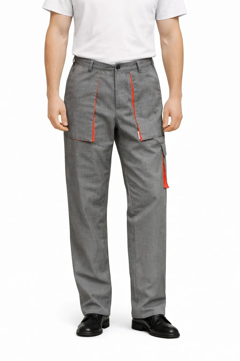 Muške radne hlače s više džepova dizajnirane su za organiziran i učinkovit rad. Ravni kroj omogućuje udobno kretanje tijekom cijelog dana.